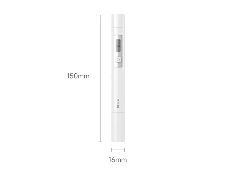 دستگاه سنجش کیفیت آب شیائومی DUKA TDS می تواند خلوص کیفیت آب را با تشخیص مقدار TDS آب شناسایی کند و آب تمیز را برای شما از آب آلوده جدا سازی نماید. در ظرفیت فیلتر دستگاه هر چقدر مقدار TDS کمتر باشد نشان دهنده میزان کمتر جامدات محلول در آب است.