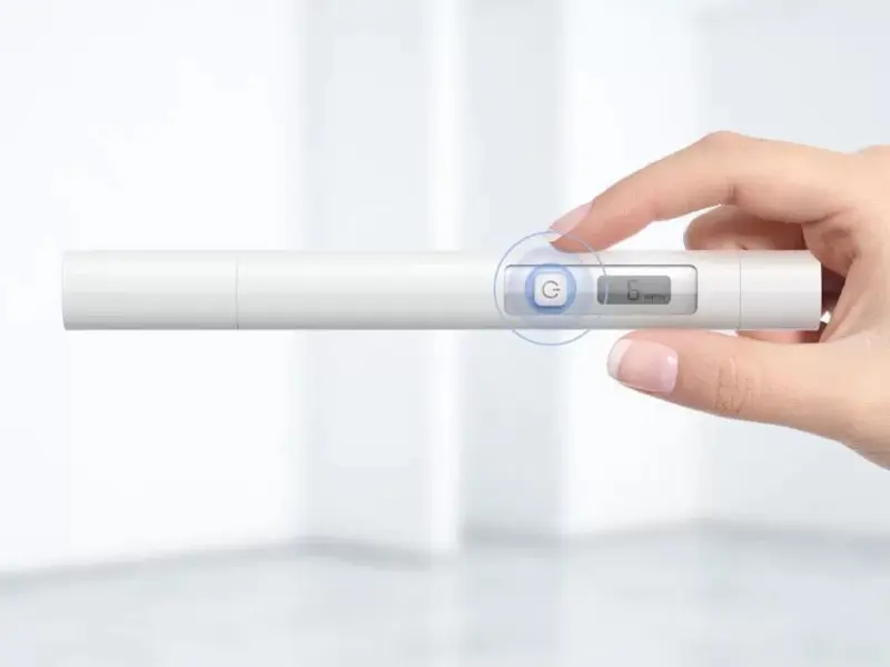 طراحی کلی دستگاه سنجش کیفیت آب شیائومی DUKA TDS کمی شبیه به یک خودکار به نظر میرسد؛ البته کمی حجیمتر است. یک درپوش در یک سر آن وجود دارد که از سنسورهای الکترود محافظت میکند. این درپوش در جایی قرار دارد که شما قصد آزمایش آب را دارید. سر دیگر این دستگاه سنجش دارای محفظه ای برای دو باتری دکمهای قابل تعویض است.