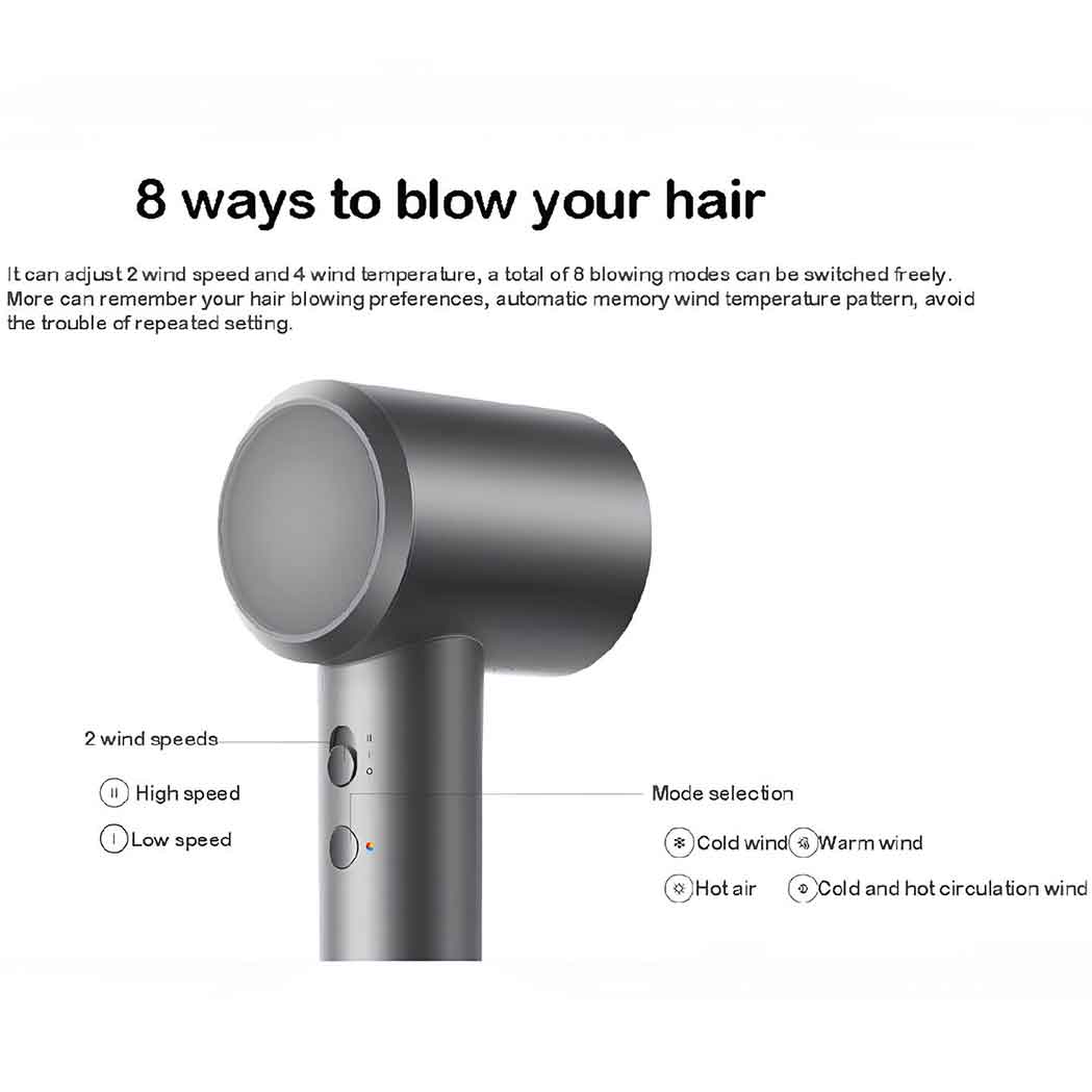 سشوار شیائومی مدل H501 با دو گزینه سرعت و چهار تنظیم دما، به شما ۸ روش مختلف برای خشک کردن موها ارائه میدهد. با قابلیت حافظه، تنظیمات دلخواه شما ذخیره میشود تا در استفادههای بعدی به راحتی از آنها استفاده کنید.