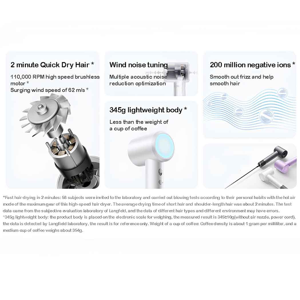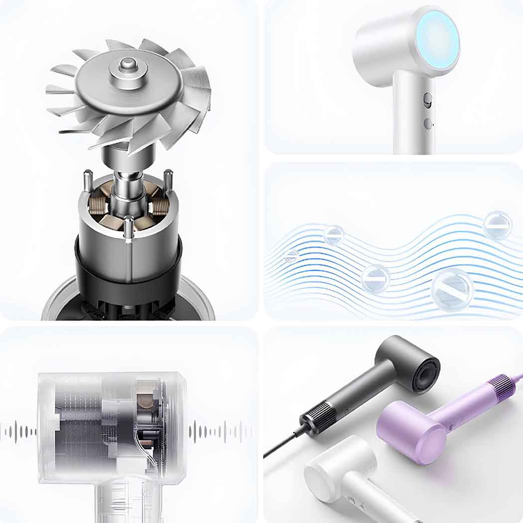 سشوار Mijia H501 با استفاده از لرزش موتور بهینه، تنظیم تعادل پویا و تکنیکهای پیشرفته کاهش نویز صوتی، به طور قابل توجهی سطح سر و صدای خود را کاهش میدهد. این ویژگیها به کاربران این امکان را میدهد که در حین تماشای تلویزیون موهای خود را خشک کنند، بدون آنکه مزاحمتی برای آرامش خانواده ایجاد شود.