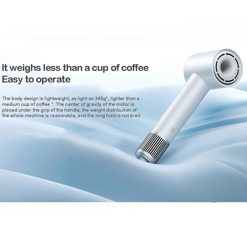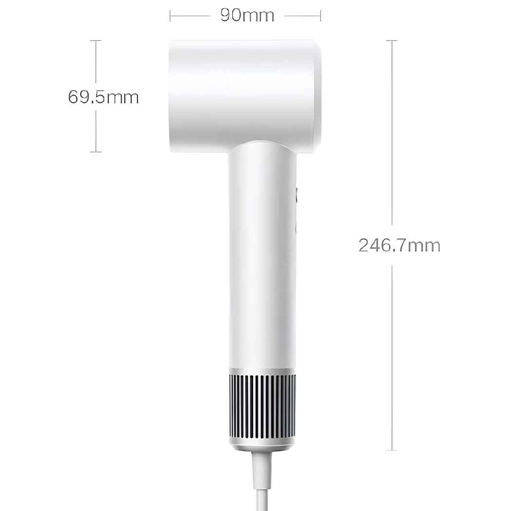 سشوار حرفهای میجیا H501 با ابعاد ۲۴۶.۷*۶۹.۵*۹۰ میلیمتر (بدون نازل هوا) و وزن تنها ۳۴۵ گرم، بسیار سبک و راحت در دست است. طراحی فشرده و متعادل وزن، به شما این امکان را میدهد که به راحتی و بدون خستگی از آن استفاده کنید.