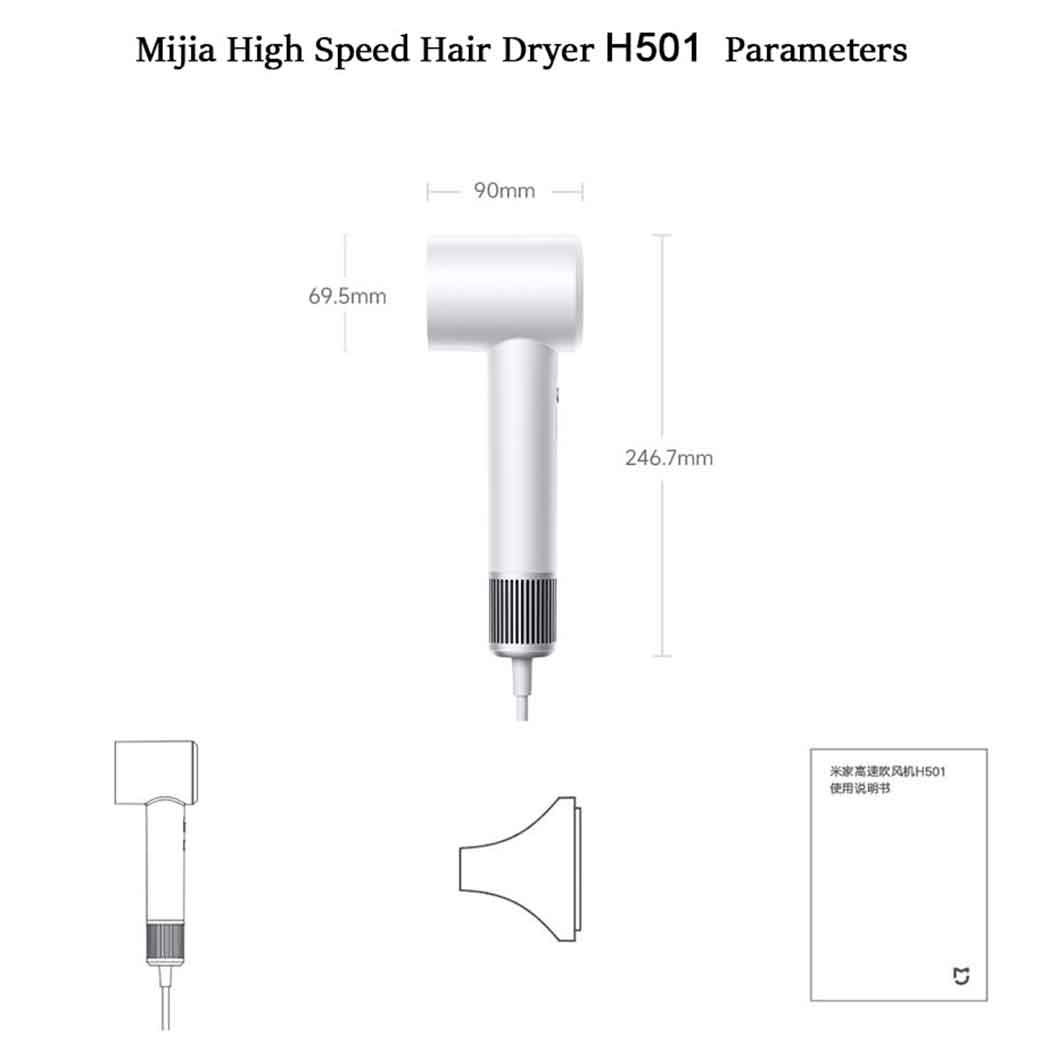 در بستهبندی سشوار شیائومی MIJIA H501، علاوه بر خود سشوار، یک نازل متمرکز و راهنمای کاربر نیز وجود دارد که به شما کمک میکند دستگاه را به راحتی استفاده و نگهداری کنید. با این سشوار میجیا، تجربهای نوین از خشک کردن سریع و راحت موهایتان را تجربه کنید و از تکنولوژی و طراحی پیشرفته این دستگاه بهرهمند شوید.