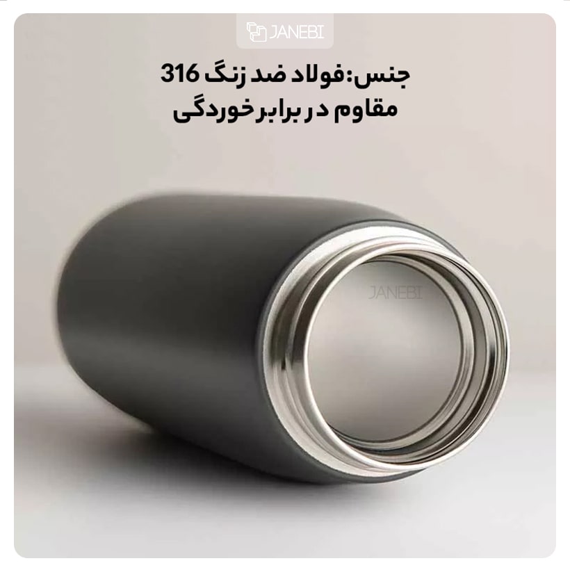 مدل ارائه شده دارای یک قاب ضد آب است. روکش بالایی به حلقه سیلیکونی مجهز شده است. طراحی منحصر به فرد مهر و موم شده به شما اجازه می دهد تا ۱۲ ساعت خود را گرم نگه دارید. می توانید در سفر ، مسافرت یا فقط برای پیک نیک با دوستان خود یک قمقمه با خود ببرید