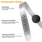 پره های تیغه بکار رفته در این فن از مواد بسیار انعطاف پذیر و نرم ساخته شده اند و در برخورد با بدن به آن آسیبی وارد نمی کنند. تیغه ها بلافاصله پس از تماس با یک جسم خارجی متوقف می شوند و پس از برداشتن آن، گردش خود را از سر می گیرند. با توجه به سرعت پایین گردش و جنس پره ها لازم نیست نگران صدمه دیدن دست کودک دلبند خود باشید.