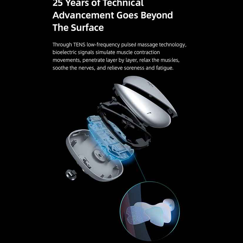 قلب تپنده ماساژور جیبی شیائومی، تکنولوژی TENS است. این فناوری با ارسال پالس‌های الکتریکی با فرکانس پایین (Low-frequency pulses)، سیگنال‌های بیوالکتریک طبیعی بدن را شبیه‌سازی می‌کند. این فرآیند باعث انقباض عمیق عضلات شده و با تحریک اعصاب، به صورت موثری درد و خستگی را از بین می‌برد. برخلاف ماساژورهای مکانیکی که فقط سطح پوست را تحت تاثیر قرار می‌دهند، این مدل به عمق بافت‌ها نفوذ کرده و آرامشی پایدار ایجاد می‌کند. این ویژگی برای کارمندان اداری، مادران و ورزشکاران بسیار ایده‌آل است.
