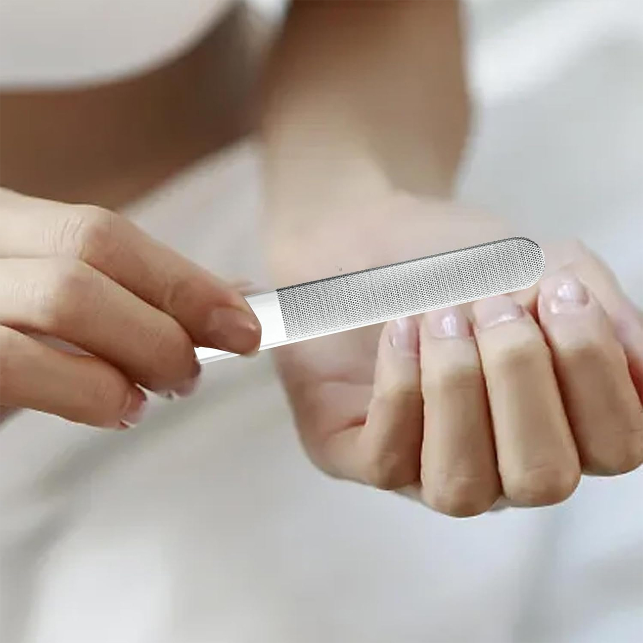 سوهان موجود در این مجموعه کاربردی برای جلادادن قسمتهای ناهموار ناخنها و از بین بردن گوشههای تیز آن دارد. به راحتی در دستان شما جای میگیرد و استفاده از آن آسان است. سوهان ناخن با بافتی خاص به آرامی و با دقت ناخنها را سوهان میدهد.