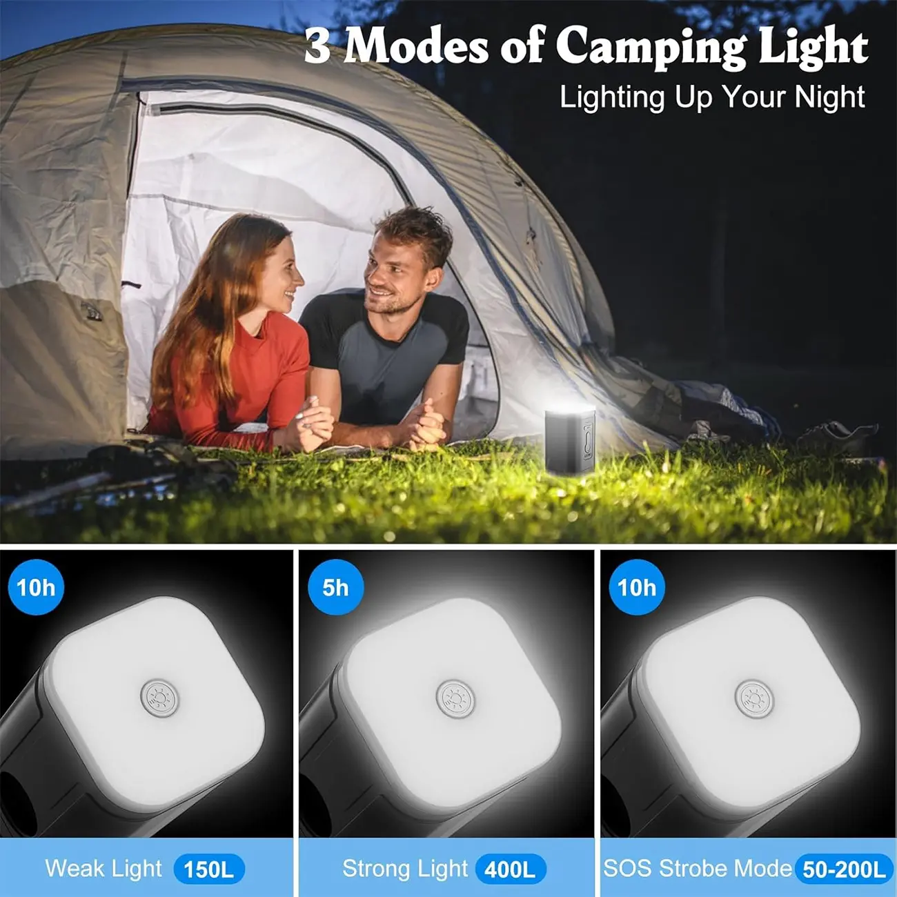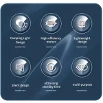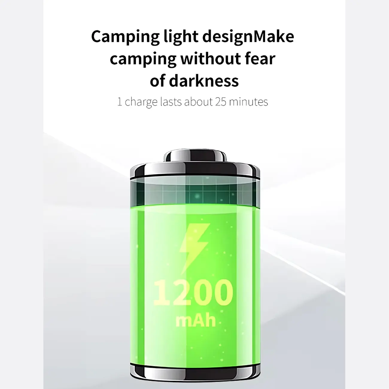 از این مینی پمپ بادی چند منظوره میتوان بعنوان چراغ کمپینگ نیز استفاده نمایید. دارای ۲ سطح روشنایی و چراغ چشمک زن اضطراری است. برای ۳ ثانیه فشار دهید و نگه دارید و نور سفید روشن میشود. برای بار دوم فشار دهید و نور بالا روشن میشود. این پمپ باد کوچک را میتوان از ۵ تا ۱۰ ساعت با شارژ کامل با عملکرد نور کمپینگ استفاده کرد. که این مدت زمان به نور انتخابی شما بستگی دارد.