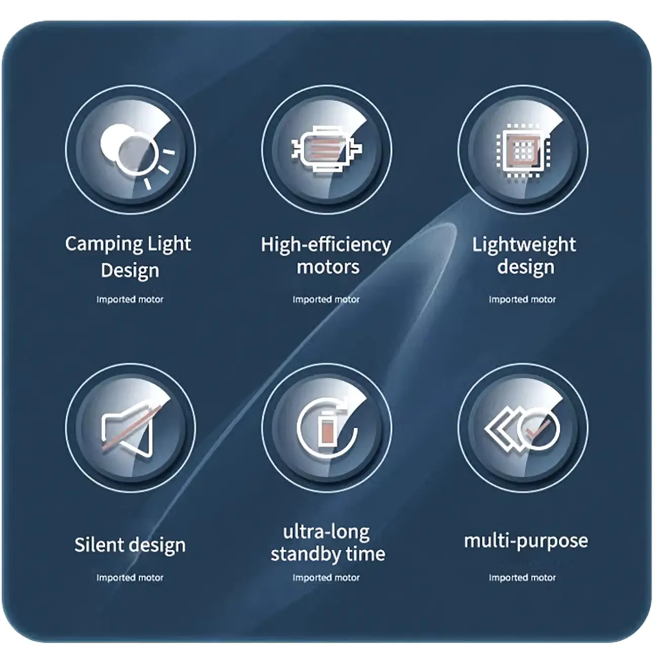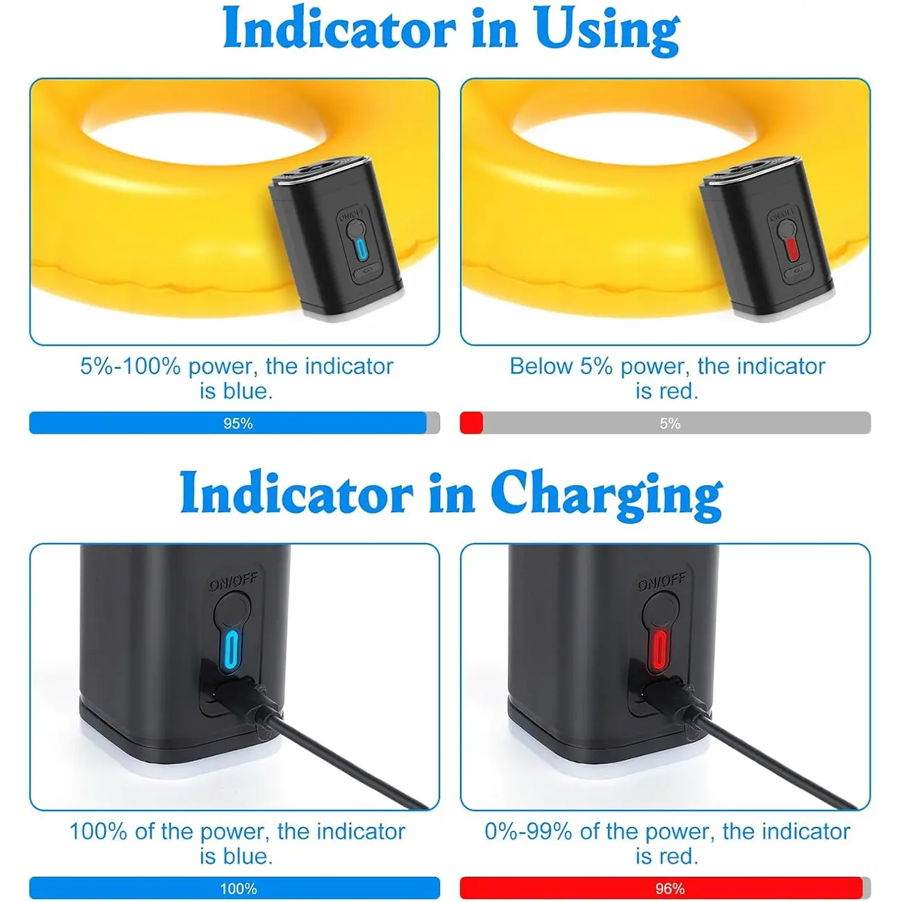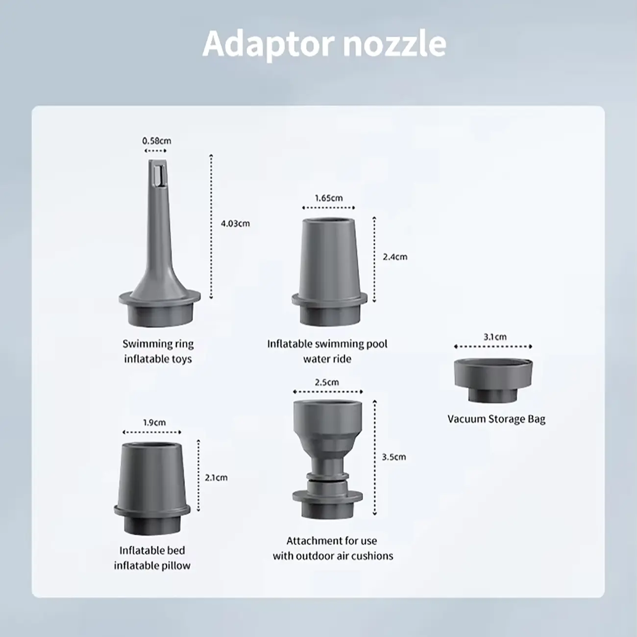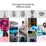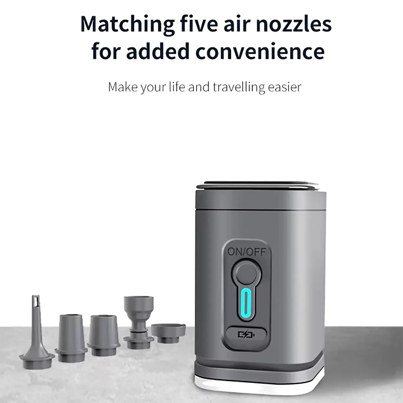 پمپ باد شارژی برای وسایل بادی دارای فشار ۴۰۰۰ Pa و جریان هوای بالا ۲۰۰ لیتر در دقیقه است که باعث میشود سرعت باد/باز شدن بادها تضمین شود و به راحتی میتواند بالشتک هوا را در حدود ۳۰ ثانیه پر کند. سطح نویز در هنگام باد کردن کمتر از ۸۰dB است که هیچ مزاحمتی برای شما ایجاد نمیکند. موتور ارتقاء یافته با مصرف انرژی کم و قدرت بیشتر فوق العاده سریع و کارآمد است.