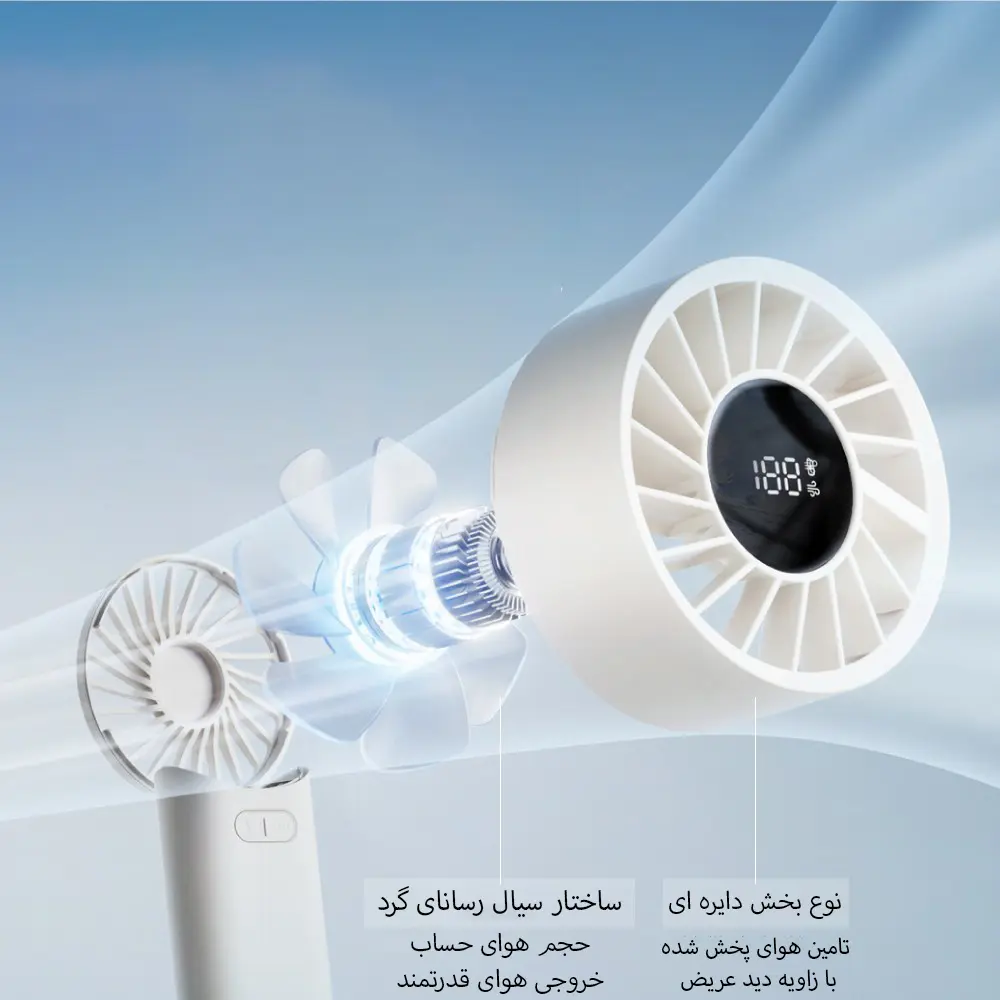 این پنکه دستی با طراحی هوشمندانه ورودی و خروجی هوا، جریان باد را یکنواخت و طبیعیتر میسازد. همچنین به دلیل استفاده از باتری لیتیومی ایمن، میتوانید بدون نگرانی آن را در پرواز همراه داشته باشید. ترکیب قابلیت قابلحمل بودن، امکان استفاده رومیزی و امنیت بالا، این مدل را به یک انتخاب عالی برای سفرهای کاری و تفریحی تبدیل کرده است.