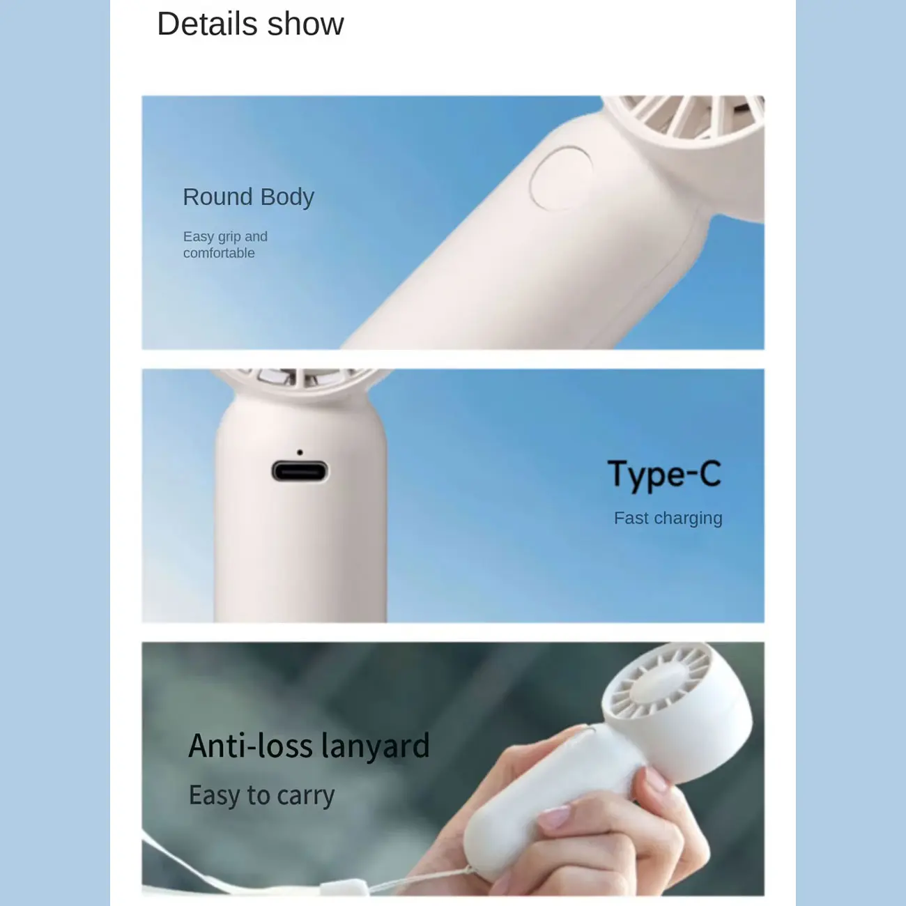 بدنه گرد و دسته خوشدست Qualitell Y6، حمل راحت و جایگیری مناسب در کیف یا جیب را ممکن میسازد. وزن حدود ۵۰۰ گرم و ابعاد بستهبندی ۲۰×۱۰×۱۵ سانتیمتر تسهیل حملونقل را تضمین میکند. جنس پلاستیکی مقاوم در برابر ضربه، دوام دستگاه را در شرایط مختلف مانند سفرهای جادهای یا استفاده در فضای باز افزایش میدهد. لنیارد ضدگم نیز امکان آویزان کردن فن به کیف یا گردن را فراهم میکند، که برای فعالیتهای بیرون از منزل مثل پیادهروی یا پیکنیک بسیار کاربردی است.