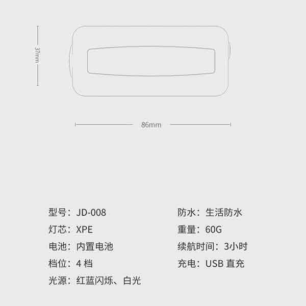 چراغ قوه مخصوص لباس پلیس مدل JD008 سبک و قابل حمل است و حمل آن را در هر کجا که می روید آسان می کند. می توان آن را با استفاده از یک گیره با قابلیت گردش ۳۶۰ درجه به شانه یا با استفاده از یک براکت به دوچرخه وصل کرد.