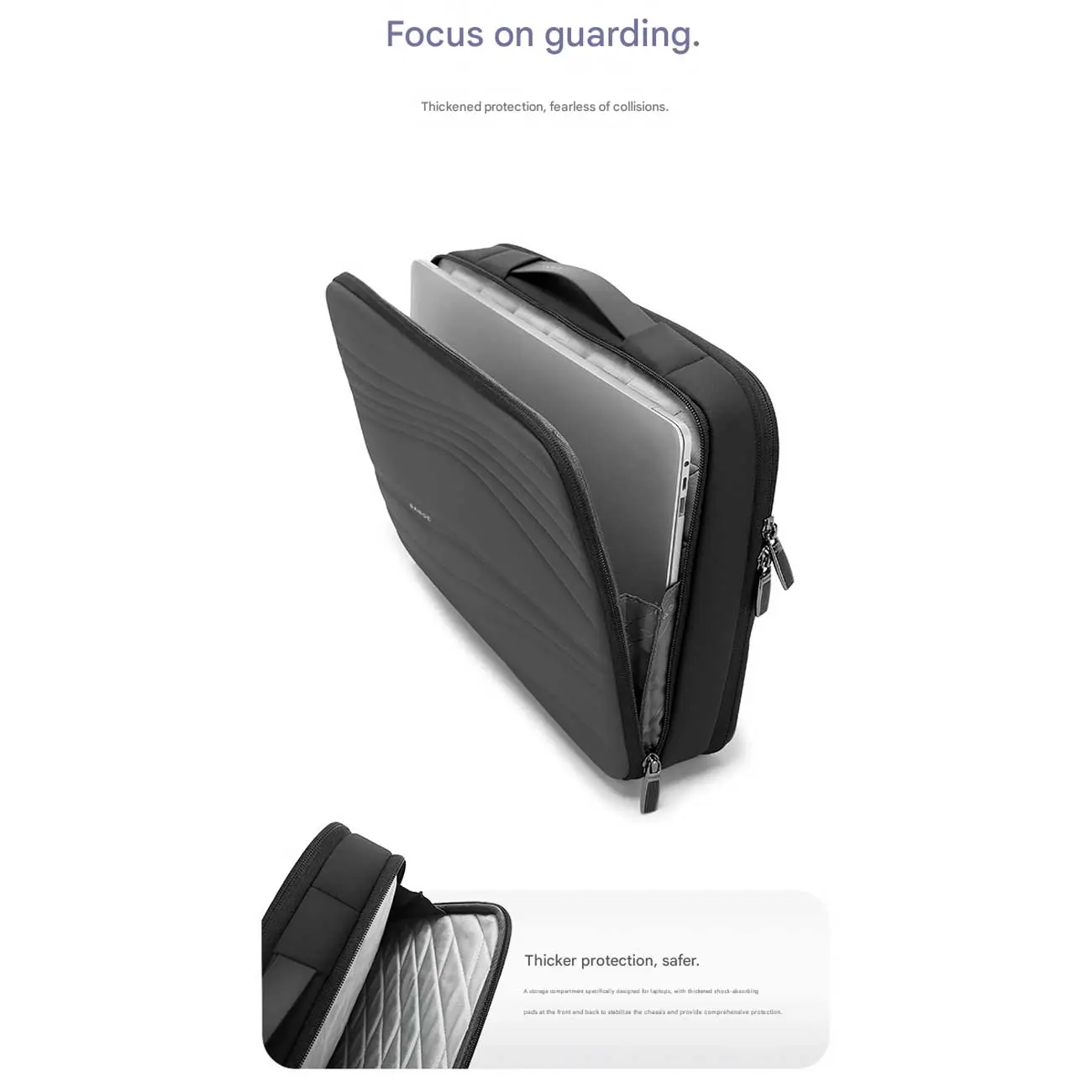 کیف لپ تاپ بنج مدل Bange BG-8018 با ساختاری دقیق و مستحکم طراحی شده تا در هر شرایطی از وسایل ارزشمند شما محافظت کند. جنس بدنه از پلیاستر مرغوب ساخته شده که مقاومت بالایی در برابر خطوخش، رطوبت و سایش دارد. این ویژگی باعث میشود این کیف برای استفاده روزانه، سفرهای کاری و محیطهای پرتردد انتخابی مطمئن باشد. طراحی داخلی آن شامل چندین بخش مجزا برای لپتاپ، تبلت، شارژر، اسناد و لوازم جانبی است تا نظم وسایل شما همیشه حفظ شود.